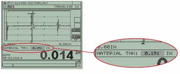 thickness reading of 0.376 in is compensated for the change in material