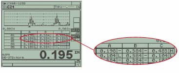 clearly indicate (H)High Alarm and (L)Low Alarm thickness measurements